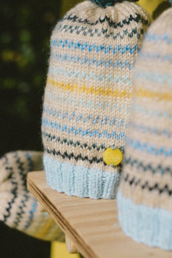 Gorritos tejidos a mano con los colores de la bandera Argentina.