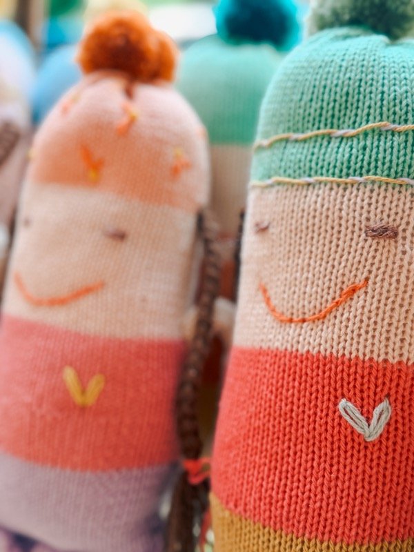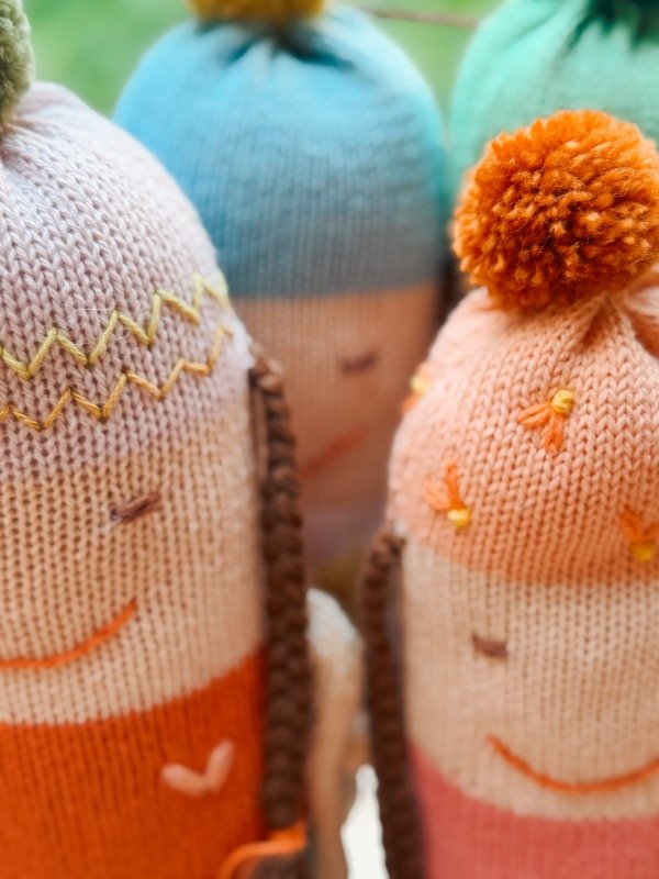 -Duendecita corazon: tejidas con colores hermosos y con un corazón bordado en el pecho.